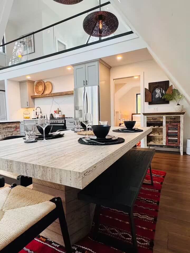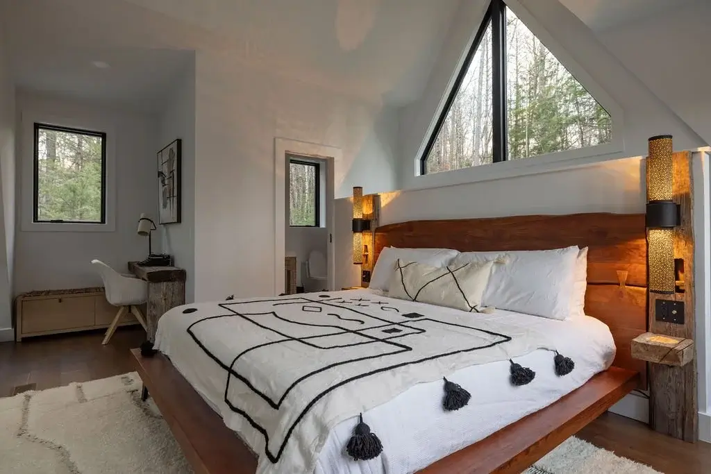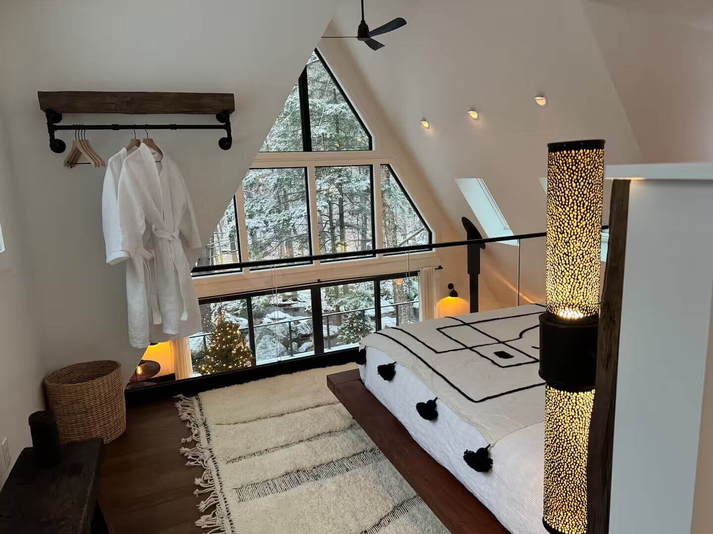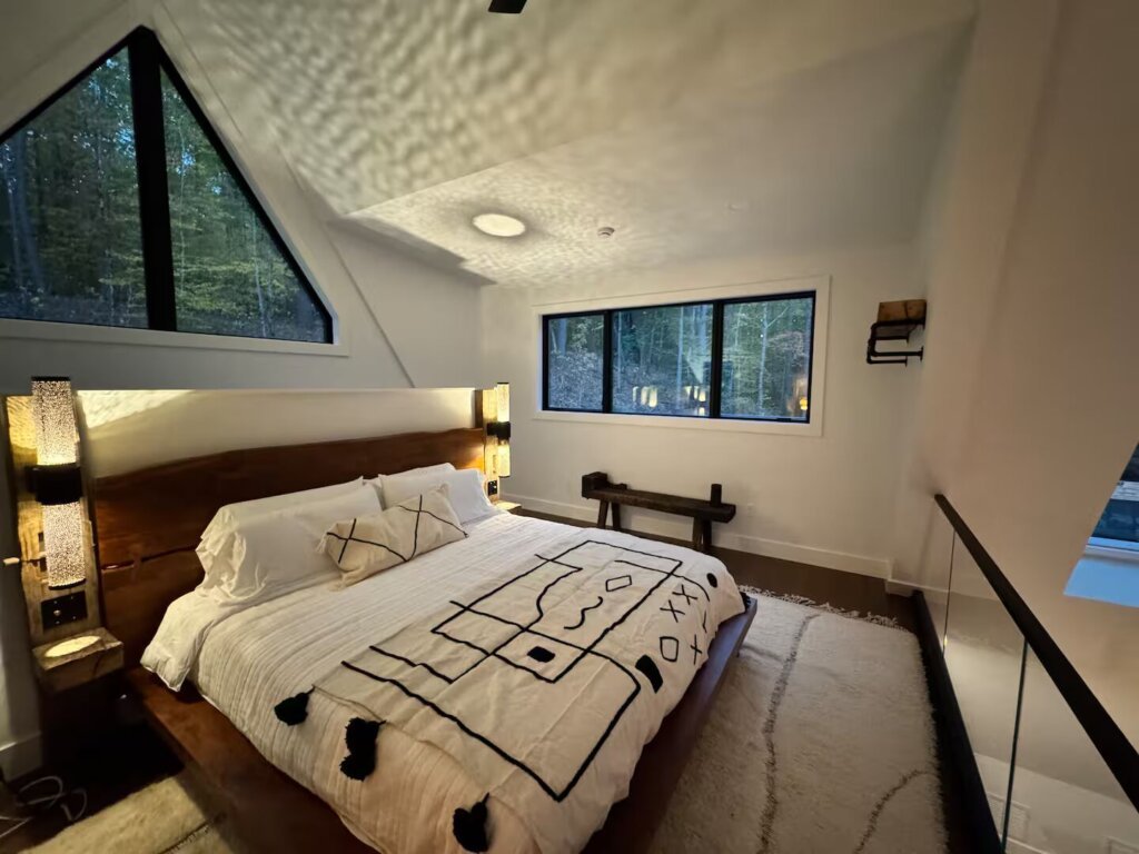Built in 2025, the ZEN A Frame offers approximately 1,300 square feet of interior living space along with over 800 square feet of outdoor deck space, creating a spacious yet cozy environment for up to four guests.