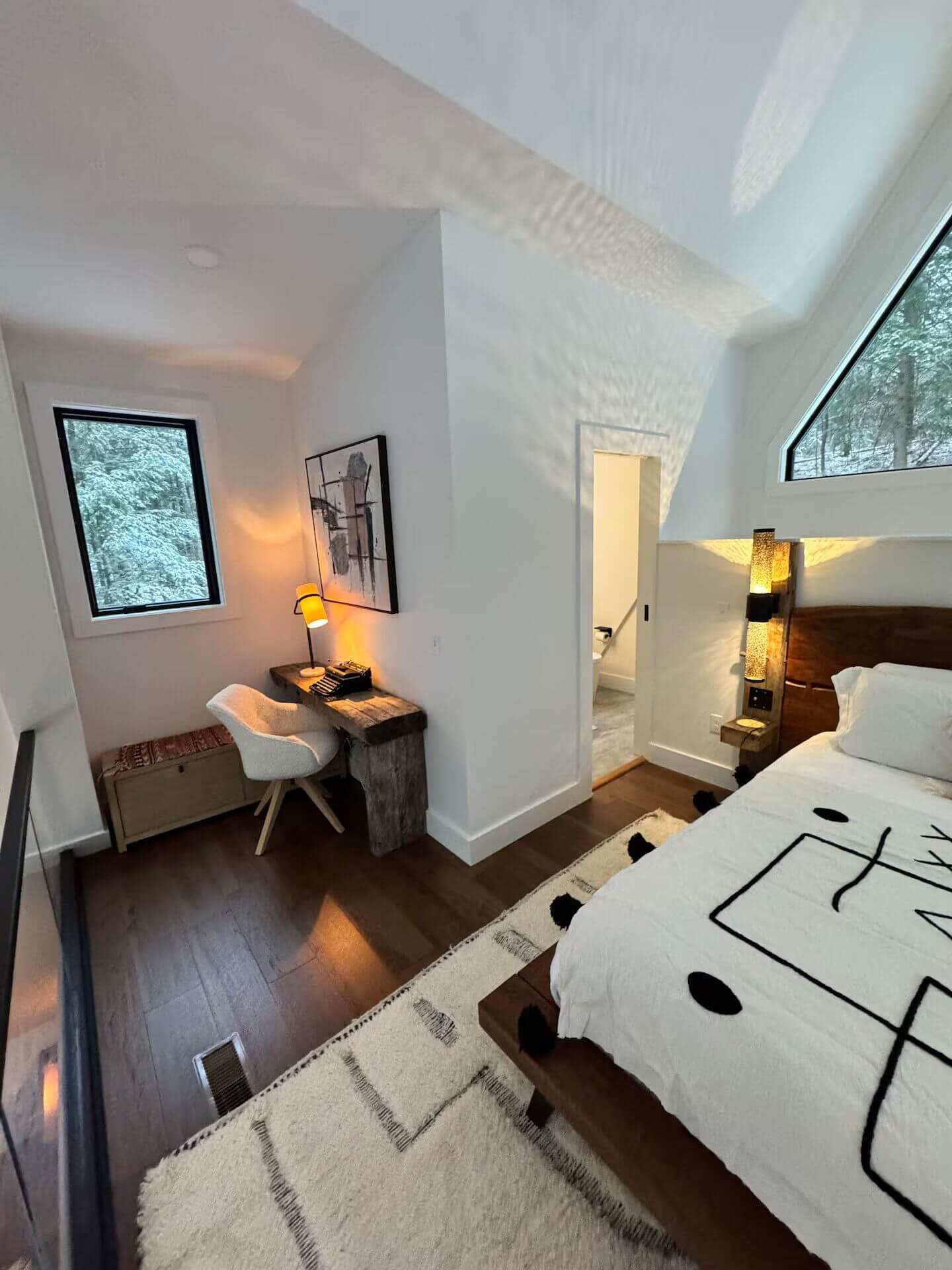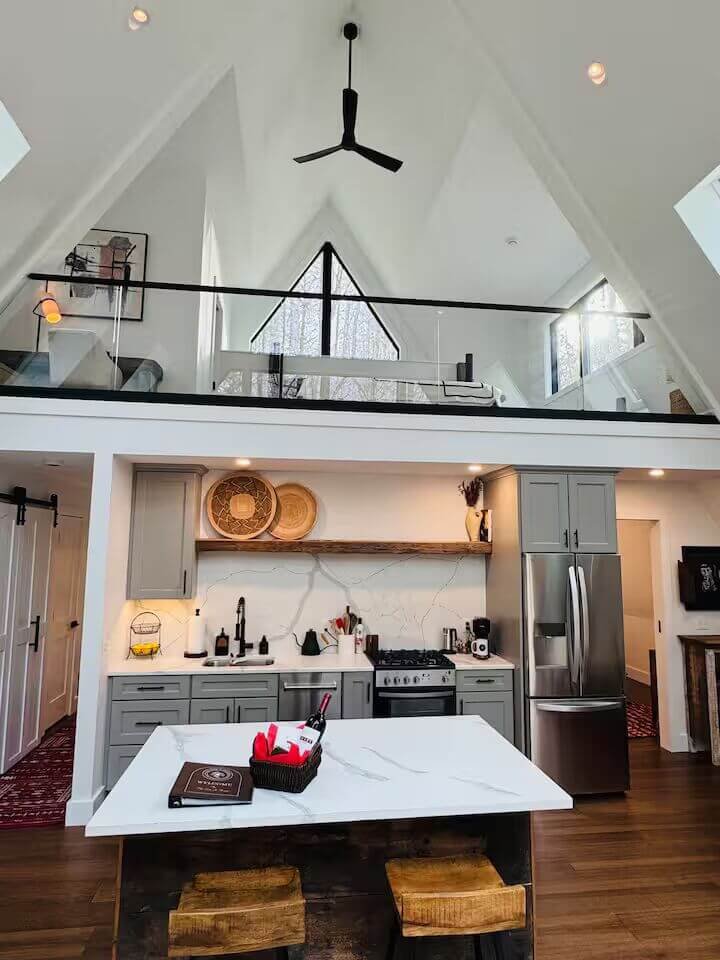 Built-in 2025, the ZEN Aframe offers a spacious 1300 square feet of modern luxurious interior living space and over 800 square feet of deck space. The attention to detail and unique design elements throughout the home are a testament to its luxurious nature.