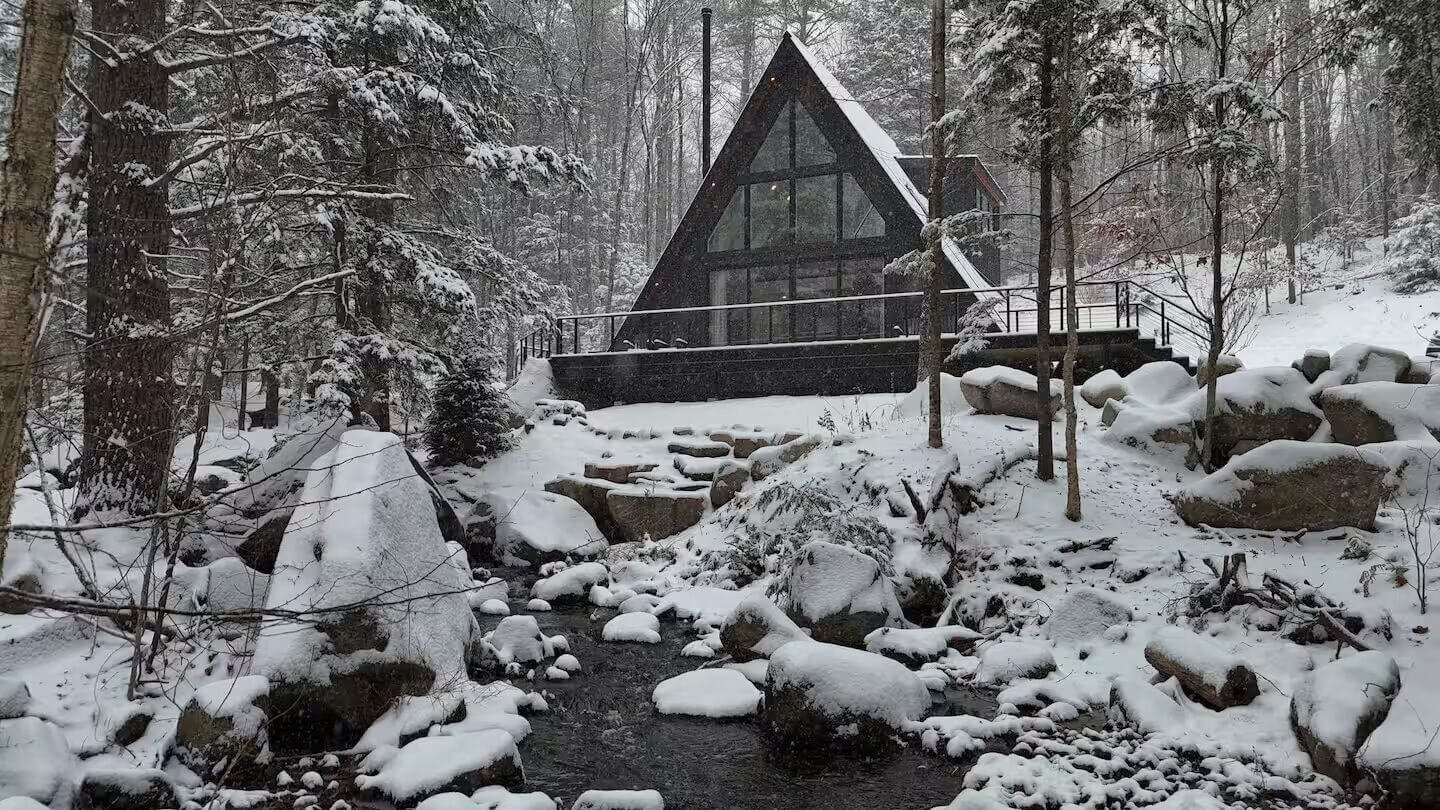The ZEN A-Frame is a sanctuary nestled on a peaceful babbling brook that flows into Lake Winnipesaukee. It provides an experience of tranquility and thoughtful luxury. Every detail is designed to help you unwind, slow down, and reconnect with nature, loved ones , and with yourself.