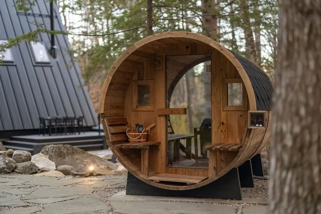 One of the highlights of the ZEN A Frame is the private sauna, offering a quiet space to relax and recharge. After a day exploring the Lake Region, the sauna provides a simple and calming way to unwind and enjoy the peaceful atmosphere of the property.