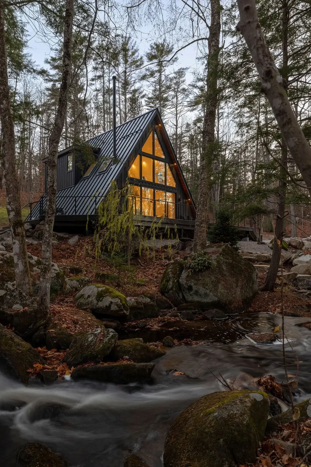 The ZEN A-Frame is a sanctuary nestled on a peaceful babbling brook that flows into Lake Winnipesaukee.